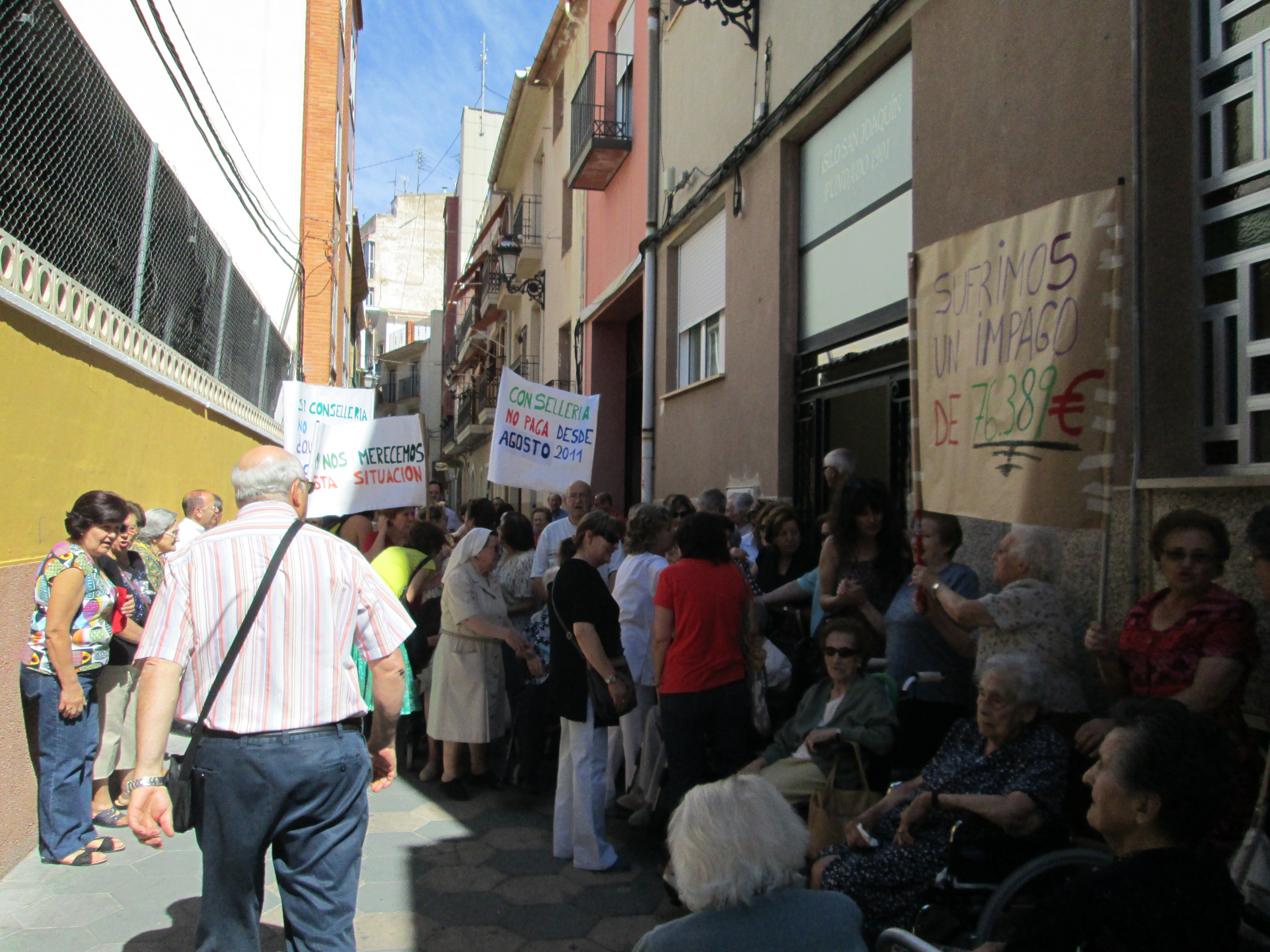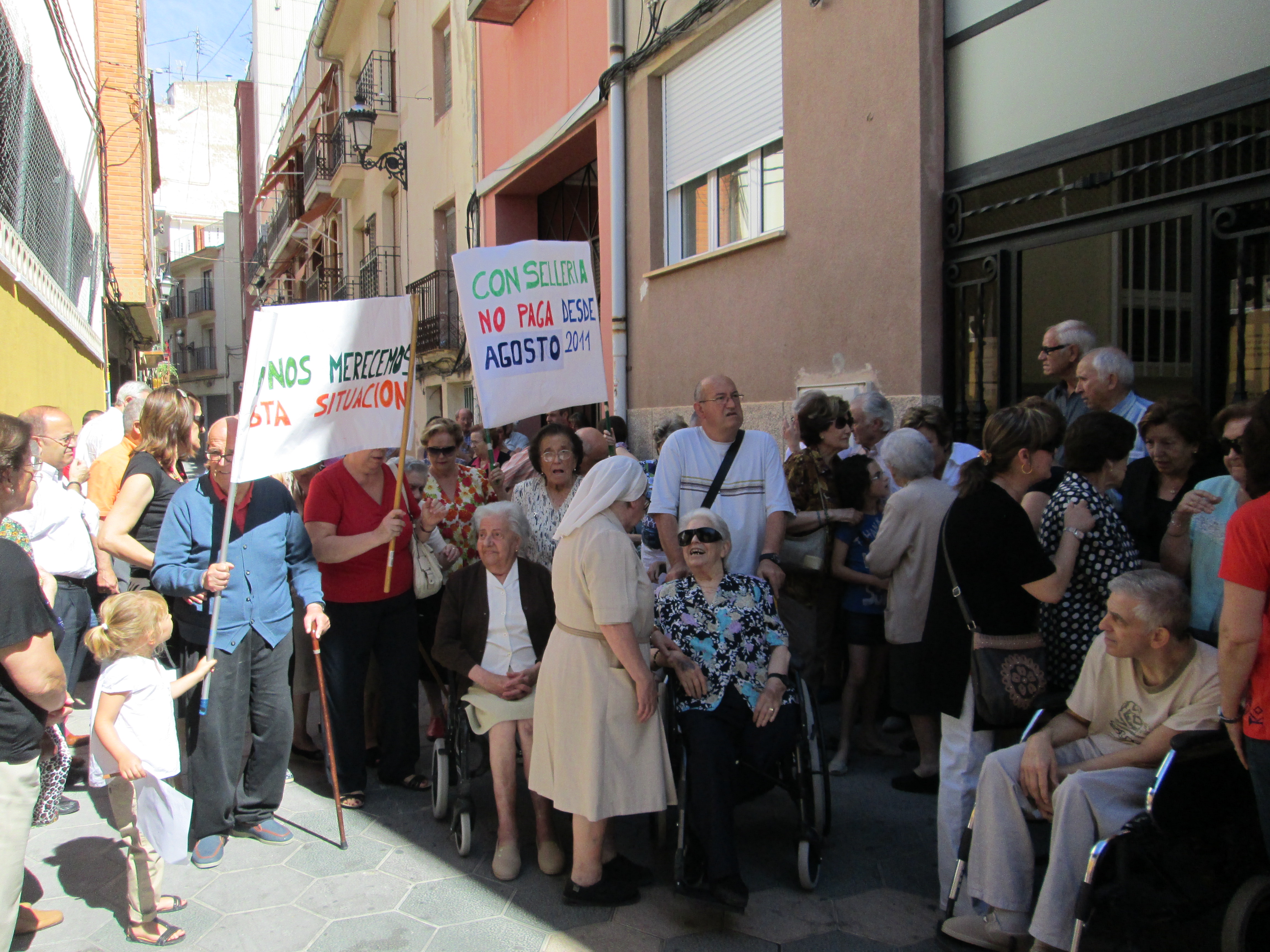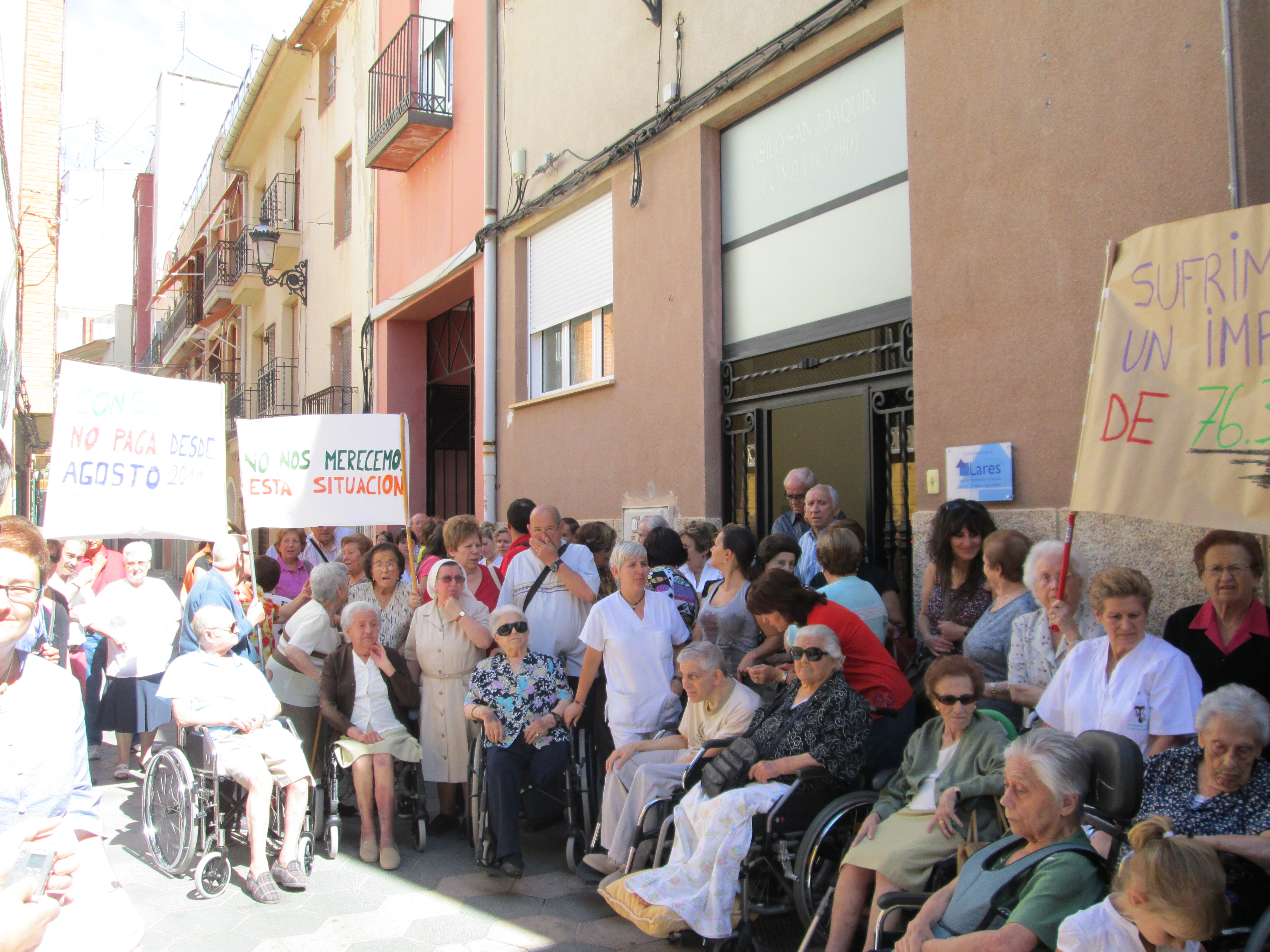 Las residencias y centros de día de Lares de la comunidad Valenciana a la que pertenece la Fundación del Asilo San Joaquín se han visto obligadas de nuevo a concentrarse simultáneamente en todas las residencias para denunciar la difícil situación económica en la que se encuentran al no hacer efectivos la Consellería de Bienestar Social de la Generalitat Valenciana los pagos comprometidos.