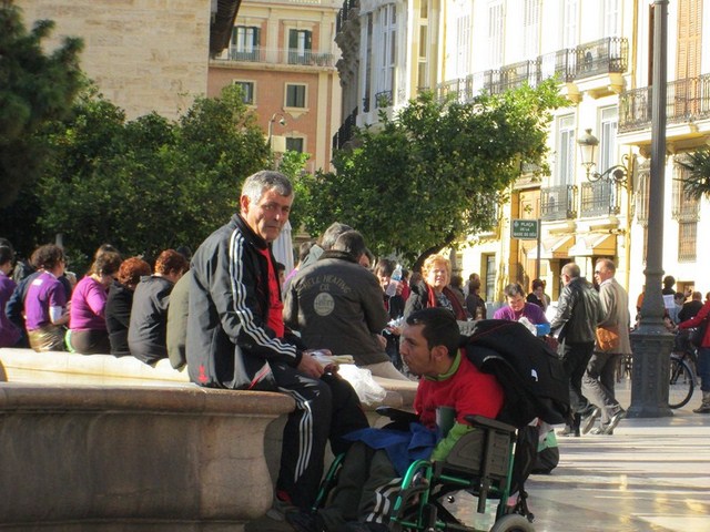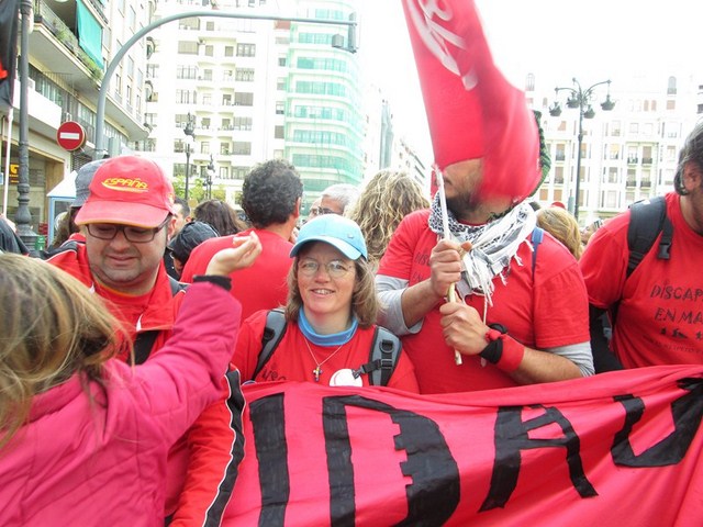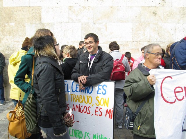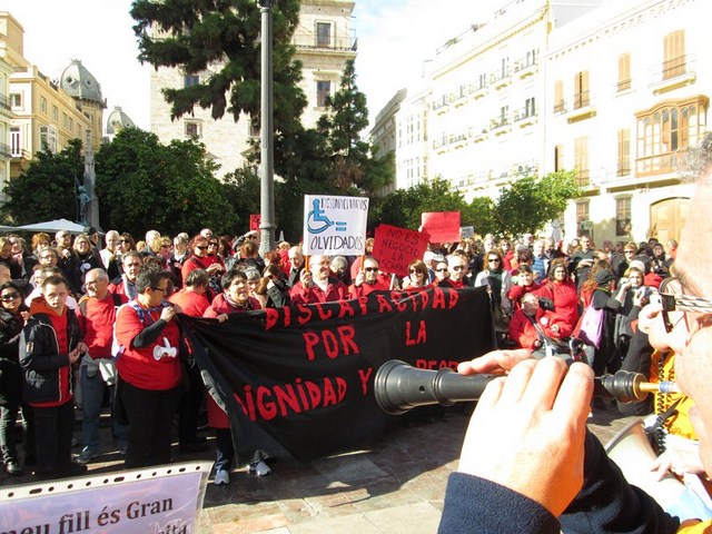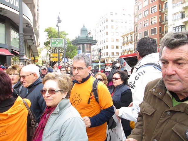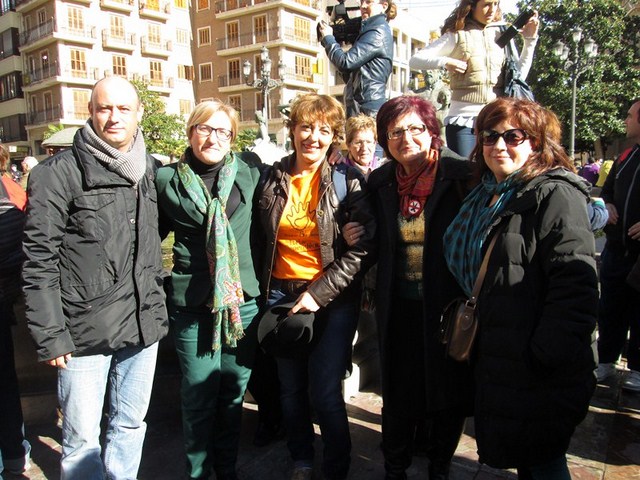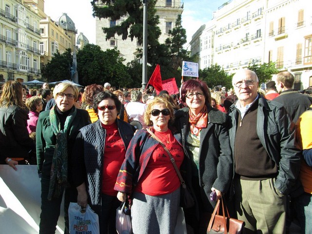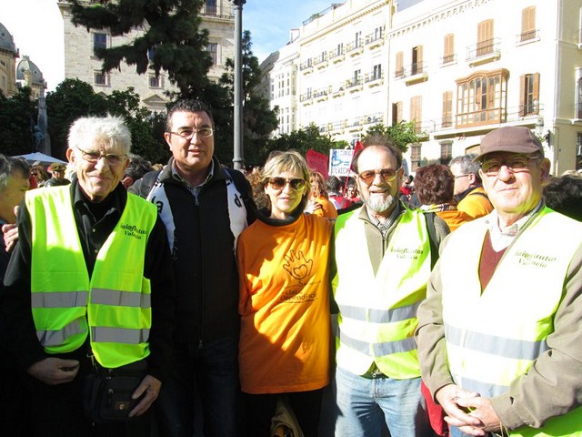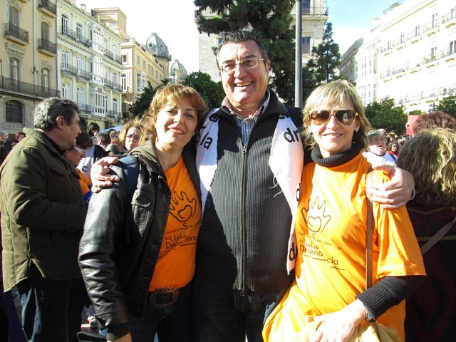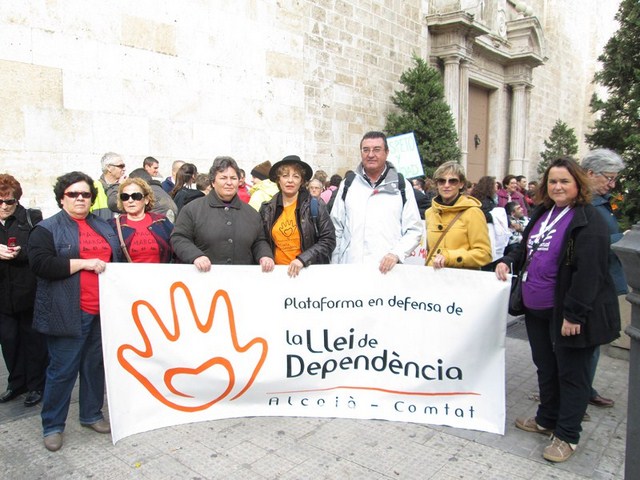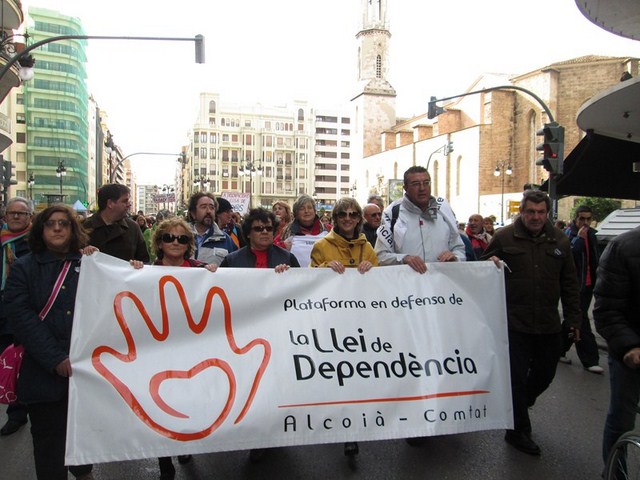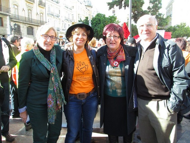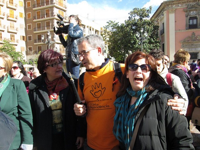 Más de 3.000 personas acudimos a la cita, para apoyar esta justa reivindicación a favor de la gente más vulnerable de la sociedad. De Ibi pude ver a mucha gente. Entre ellos a algunos representantes de la asociación Mariana Pineda y de la Federación de Asociaciones Vecinales de Ibi (FAVI), prácticamente todos los cuidadores y usuarios del Taller Ocupacional San Pascual, el compañero de batallas de EU Emilio Boix, nuestro querido compañero Vicente García Pascual, quien trabaja en Valencia y acudió a recibirnos, y muchos más vecinos de Ibi entre las que me encontraba yo misma. Todos tuvimos la oportunidad de vivir una jornada reivindicativa junto a la Plataforma de Defensa de la Ley de Dependencia de la Comunidad Valenciana y muchos colectivos sociales que se sumaron a la manifestación.