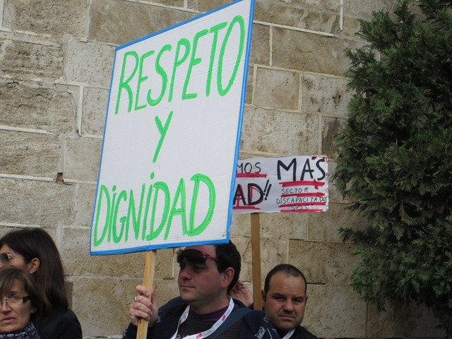 La iniciativa “Discapacidad en marcha, por el respeto y la dignidad” de los dependientes, sus familias y los profesionales que los atienden, llegó ayer a Valencia donde estuvimos para darles un fuerte abrazo y acompañarlos en el último trayecto por las calles de Valencia.