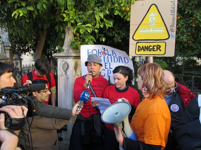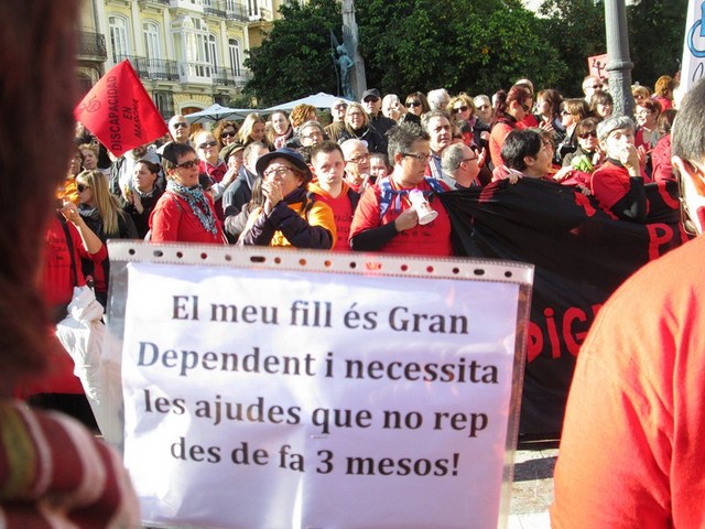 El punto final de la marcha era el Palau de la Generalitat, dónde se les ignoró totalmente. Los organizadores intentaron entregar el manifiesto que incluye sus reivindicaciones pero nadie les atendió. Dicho manifiesto será presentado en forma de propuesta de forma conjunta por todos los grupos políticos del Ayuntamiento en el pleno convocado para este próximo lunes. En él se pide, entre otras reivindicaciones, que se satisfaga la deuda contraída con los dependientes y los centros donde los atienden, y que se dejen sin validez las nefastas modificaciones que el PP ha aplicado sobre la asistencia a la discapacidad y dependientes y que tanto daña a este colectivo social.