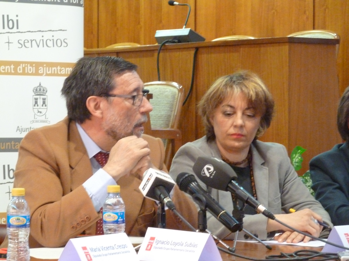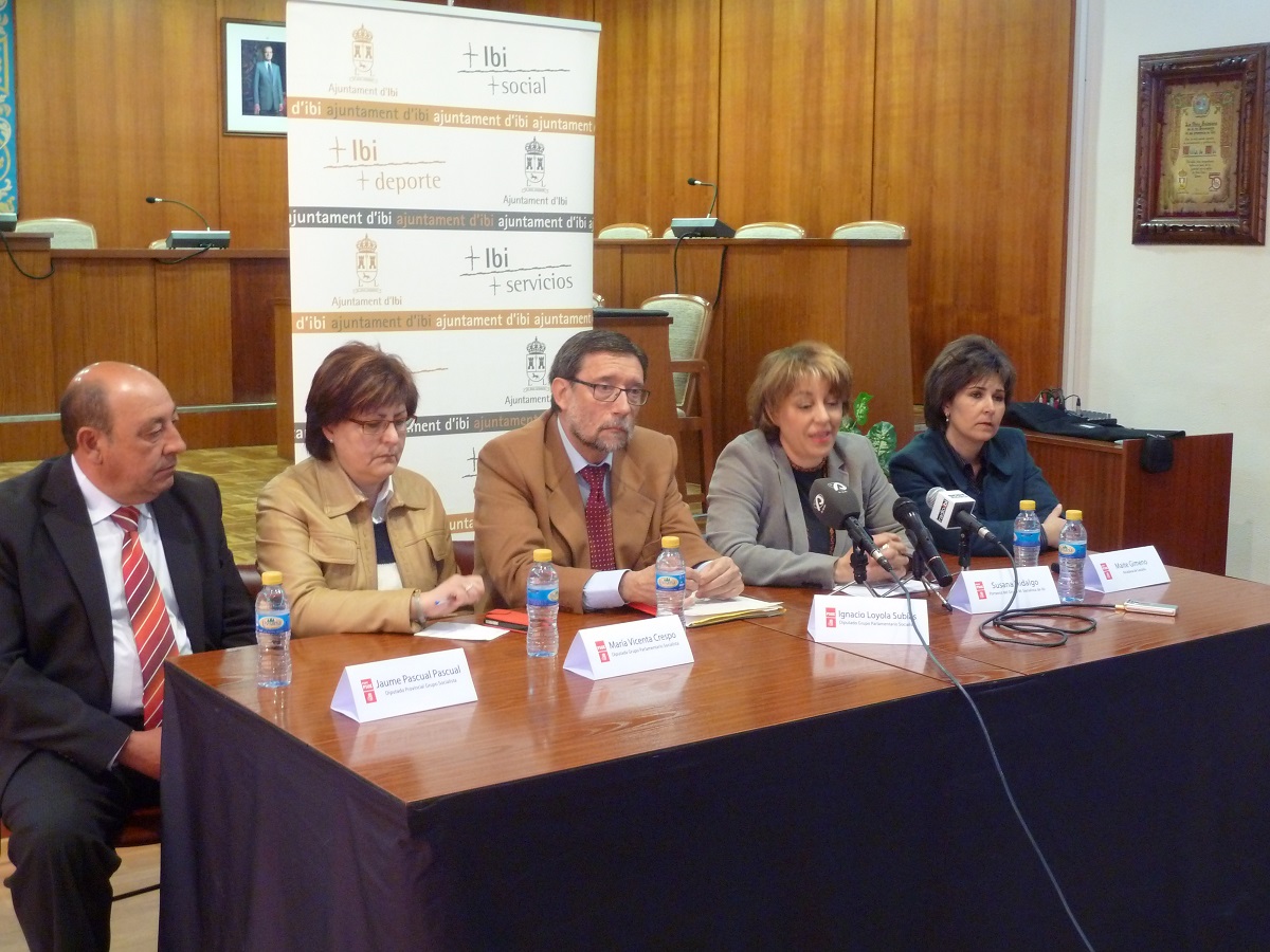 Los Diputados socialistas en las Cortes Valencianas, Juan Ignacio Subías y María Vicenta Crespo, visitaron ayer Ibi para ofrecer una rueda de prensa, convocada por el Grupo Municipal Socialista local, y en el que se han denunciado los recortes que la Generalitat está aplicando a la sanidad pública y más concretamente, la reducción en el horario de las ambulancias con Soporte Vital Básico en la comarca. Igualmente han intervenido Jaume Pascual Pascual, Diputado Provincial por el Partido Socialista y Secretario General de la Ejecutiva Comarcal, Maite Gimeno Piña, Alcaldesa socialista del vecino municipio de Castalla y Susana Hidalgo Vidal, Portavoz del Grupo Municipal Socialista y Secretaria General de los Socialistas ibenses.