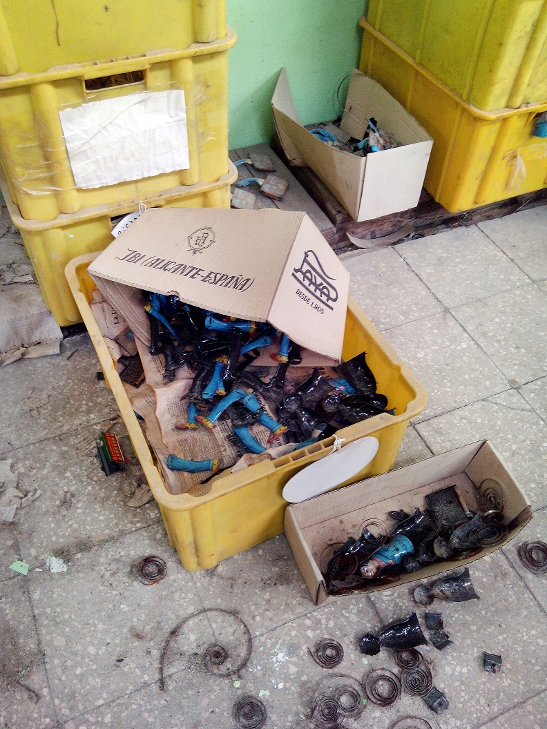 Desde 2003, año en que el PP entró a gobernar en el Ayuntamiento de Ibi, la fábrica ha sufrido un abandono total. Maquinaria y piezas únicas, documentos y materiales históricos, recursos no sustituibles, emblema y testimonio todo ello de nuestro germen industrial, del ADN de los ibenses, de nuestra historia,… todo abandonado a su progresivo deterioro durante los 12 años de desgobierno del PP. Las imágenes son desoladoras. El PP, además de cerrar durante años el museo y de ignorar el maravilloso proyecto museístico que Vicente García dejó sobre la mesa y en el que ahora nos basamos, también abandonó a su suerte la fábrica y todo el valioso material que contiene.