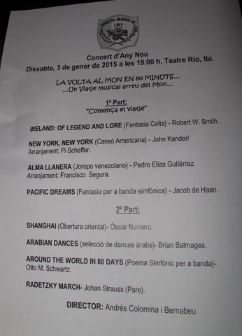 El pasado día 3 de enero, en el Teatro Río, y con casi el aforo al completo, la Unión Musical de Ibi, nos ofreció el Concierto de Año Nuevo, dedicado en esta ocasión a aquellos amantes de la música y a los aficionados a los viajes aunque sólo sean en forma de sueños. Parafraseando a Julio Verne, pudimos transportarnos disfrutando con “Vuelta al mundo en… 80 minutos”.