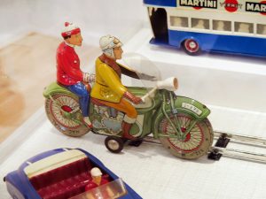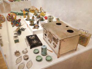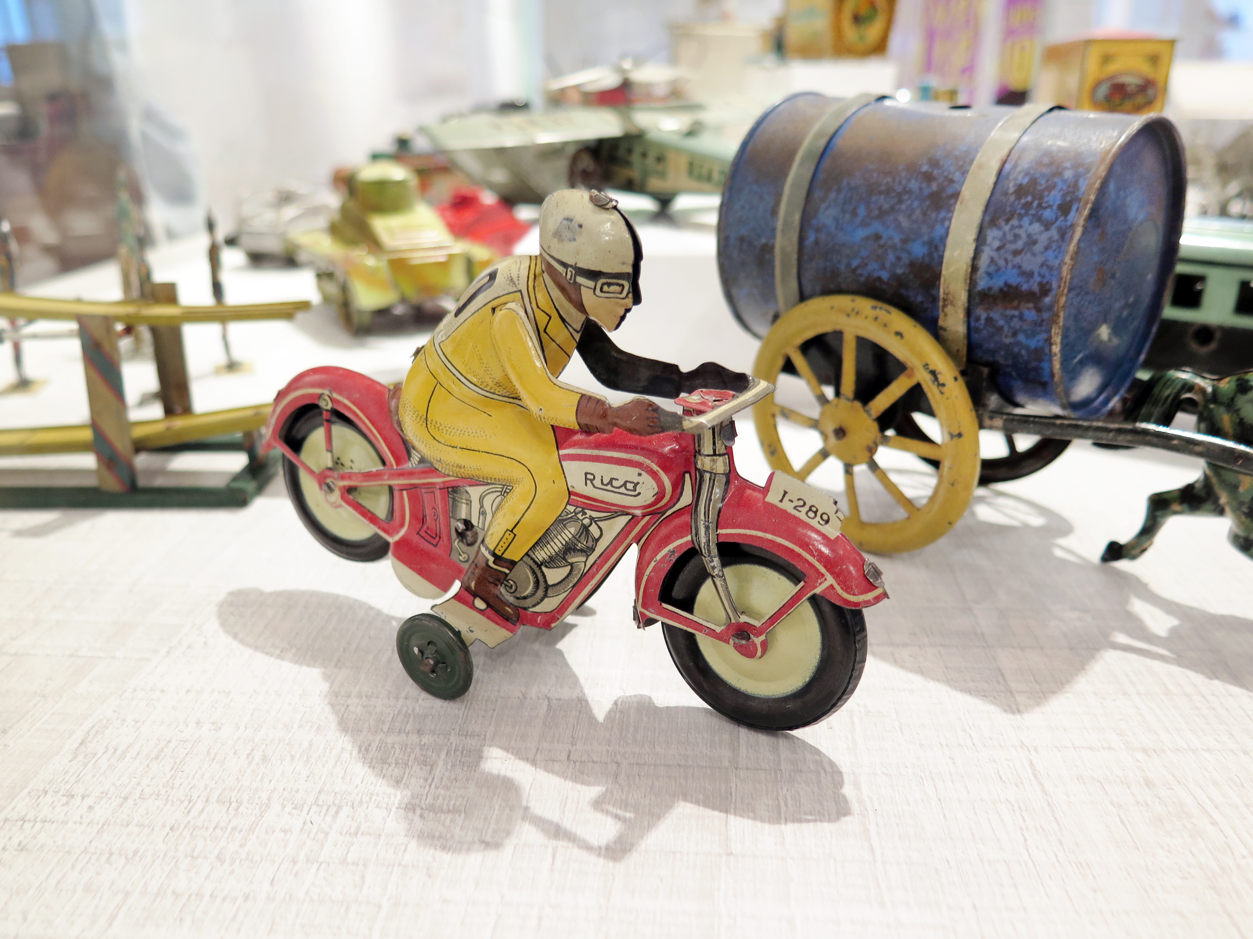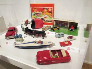 Pasamos de observar con curiosidad los primeros juguetes, verdaderos prodigios artesanales, a ir siguiendo con admiración la evolución de estos, siendo cada vez más patente la aplicación de nuevas tecnologías, punteras en la época. Como hilo conductor, la invariable calidad de todos y cada uno de los juguetes. En las últimas vitrinas encontramos incluso algunos juguetes con los que algunos de nosotros llegamos a jugar, algo que nos alegró y llenó de melancolía pero que también nos dejó ver que el tiempo pasa para todos.