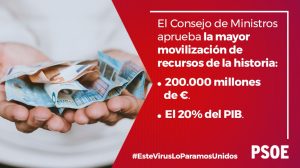 El Gobierno moviliza 200 mil millones de euros, el 20% del PIB español, para ayudar a trabajadores, autónomos y empresas ante el parón de la economía.