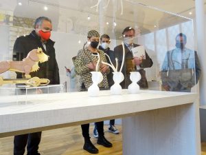 Campos ha sido recibido por los representantes de la Corporación Municipal y la Coordinadora del Museo del Juguete, Pilar Avilés, quien ha conducido la visita guiada al museo, tanto a la exposición permanente como a la temporal, dedicada en esta ocasión a los juguetes fabricados en cerámica.