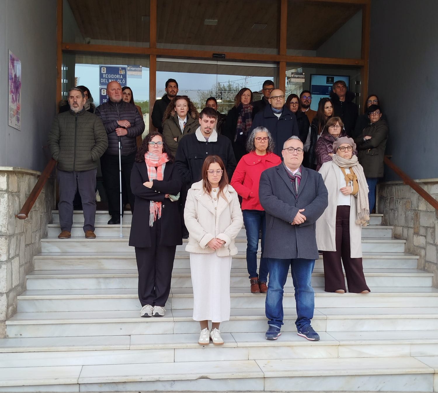 El Ayuntamiento de Ibi ha guardado hoy lunes un minuto de silencio como muestra de duelo y solidaridad tras el trágico accidente ferroviario ocurrido en Ademuz. El acto, celebrado a las puertas del consistorio, ha contado con la presencia de representantes de la corporación municipal y personal del Ayuntamiento, que han querido expresar públicamente su apoyo a las víctimas, a sus familias y a todas las personas afectadas por este suceso.